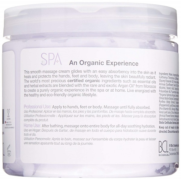 Idealan hidratantni masažni medij. BCL Spa masažna krema bogata je antioksidansima i vitaminima, s certificiranim organskim sastojcima poput arganovog ulja iz Maroka, maslinovog ulja, ekstrakta morskih algi i limuna dubinski hidratizira i njeguje kožu.